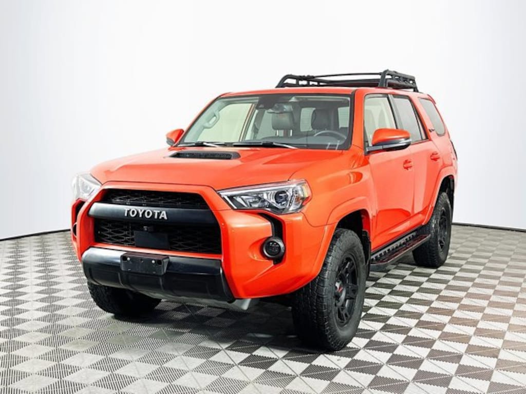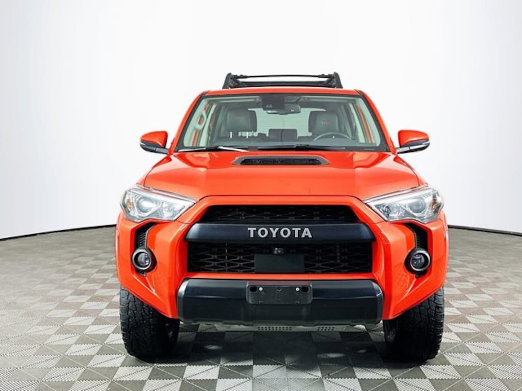Solar Octane Clean CARFAX. Apple CarPlay/Android Auto, Black Lug Nuts, Dual Zone Auto Climate Control, Fog Lights, Fox Shocks, Garage Door Opener, Heated Front Bucket Seats, Heated Outside Rear-View Mirrors, Moonroof w/Tilt Up & Slide, Multi-Terrain Back Monitor, Navigation System, Roof Rack, SofTex Seat Trim, TRD Pro All Weather Floor Liner, TRD Pro Badging, TRD Pro Exhaust, TRD Pro Package, TRD Shift Knob, Wheel Locks. CARFAX One-Owner.
